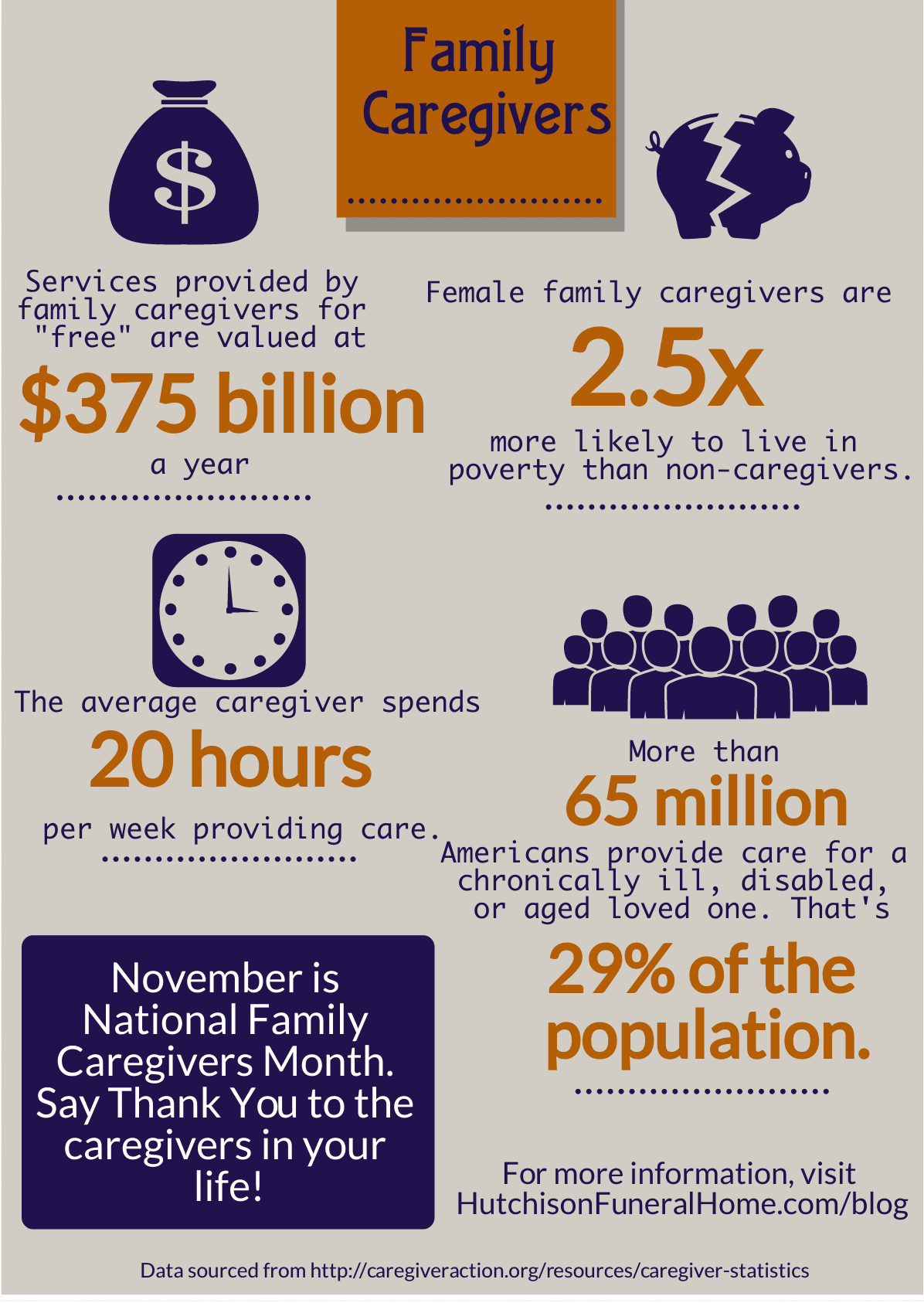 The Hutchison Funeral Home recognizes the important role of family caregivers in society. We appreciate you and acknowledge your sacrifice. Remember that you deserve relaxation and it makes you a better caregiver for your loved one. Try to incorporate one of these self-care efforts into your life today.